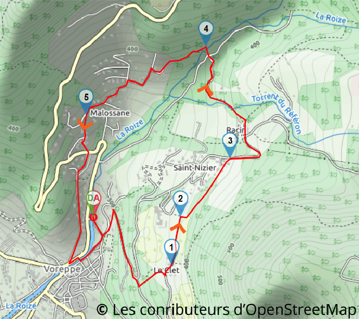 Ce circuit, au départ du parking des grandins de Roize, peut être complété par une promenade historique et patrimoniale à travers le vieux bourg de Voreppe.