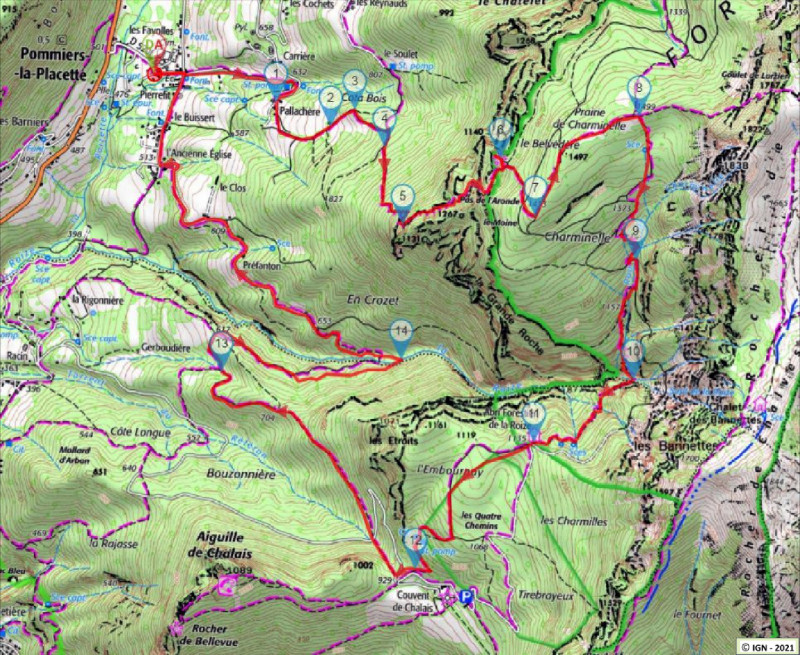 Le départ est à Pommiers la Placette (commune nouvelle de La Sure en Chartreuse).