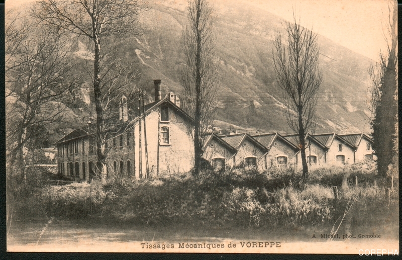 Cette usine était située à l'emplacement de la nouvelle mairie de Voreppe.Agrandie à deux reprises, elle comporte en 1908, 137 métiers à tisser.